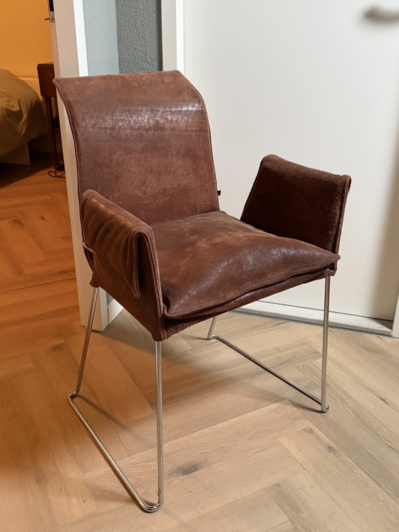 ConditieHeel goedKleurenBruin, ZilverMateriaalMetaal, LeerAantal stuks6MerkKFF1e eigenaarJaHoogte87 cmBreedte57 cmDiepte57 cm