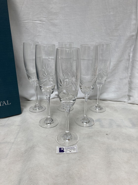 Image 1 of 6 kristallen champagneglazen Tsjechië 90'S