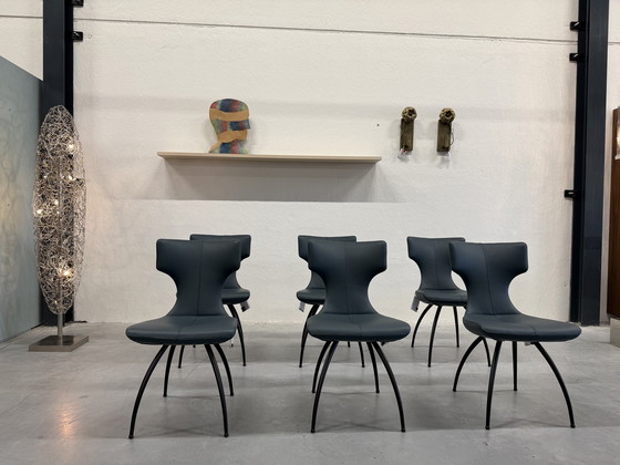 6 nieuw leolux callas eetkamerstoelen met artisan siernaad uitgevoerd in Senso leder in de kleur Sagada.