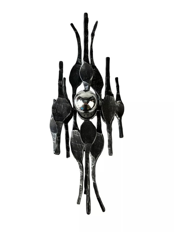 60s 70s Brutalistische Wandlamp Wandlamp Ijzer & Glas Design Wandlamp