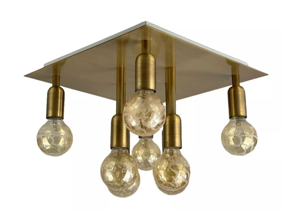 60s 70s plafondlamp Sölken Leuchten Duitsland Design messing Space Age
