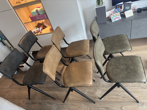Deze nette eetkamerstoelen ‘schoolstoeltjes’ zijn in prima staat alleen het PU leer laat opeens los. Wij hadden deze gewoon gehouden als het leer gewoon nog erop zat!