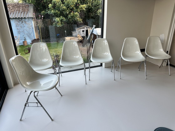 6x Herman miller Eames DSR Fiberglass kuip stoelen stapelbaar