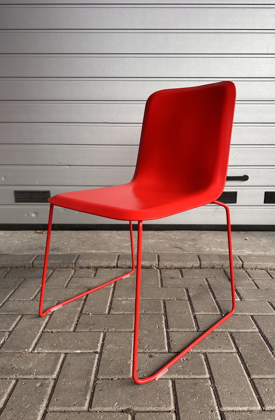 Set van 6 originele Lensvelt designstoelen, model This Chair. Ontwerp van Richard Hutten. Strakke, stevige stoelen die makkelijk aan tafel of in projectruimtes passen.