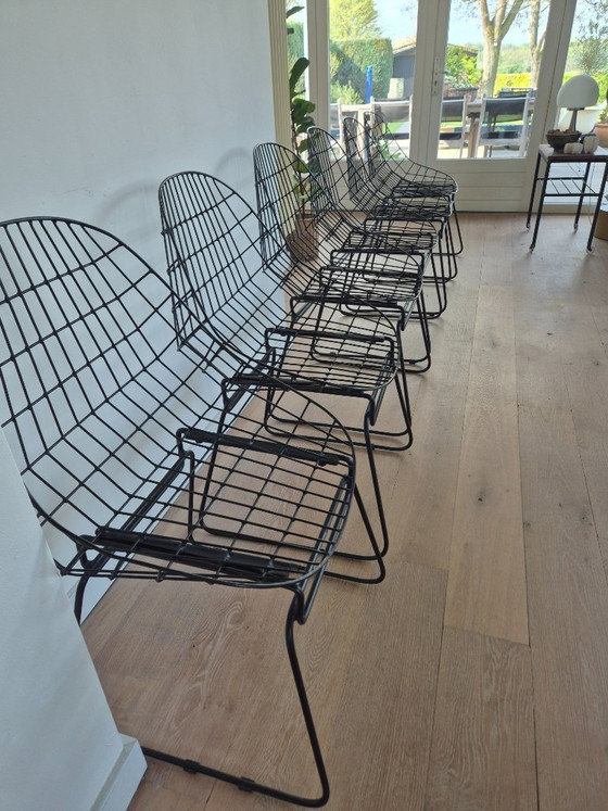 6x zwarte Pastoe SM05 draadstoelen ontworpen door Cees Braakman jaren 60. Er zijn helaas geen kussens inbegrepen.