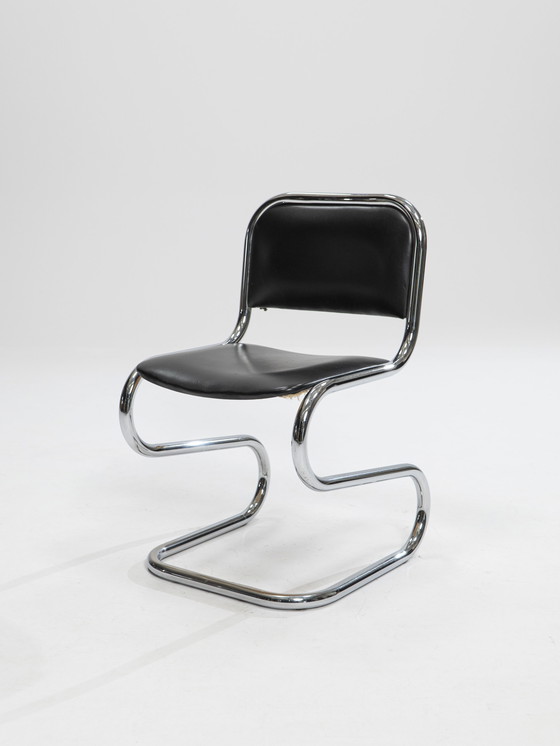 6x vrijdragende chromen eetkamerstoelen, Italië, jaren 1980