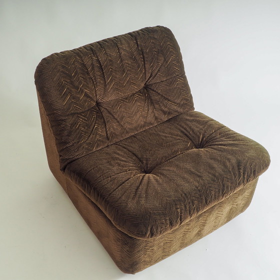 70s fluwelen 1 zits bank in donkerbruin / olijfgroene kleur, organische vormen, kussen kan verwijderd worden. Uitstekende vintage staat (let op wat verkleuring aan zijkant)