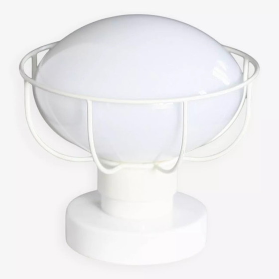 Afmetingen: H19 x B19 x D19 Kleur: Wit Materiaal: Metaal Stijl: Design 80s lamp, wit gelakt metaal en glazen bol. Prachtig ontwerp. Vintage elektrificatie.