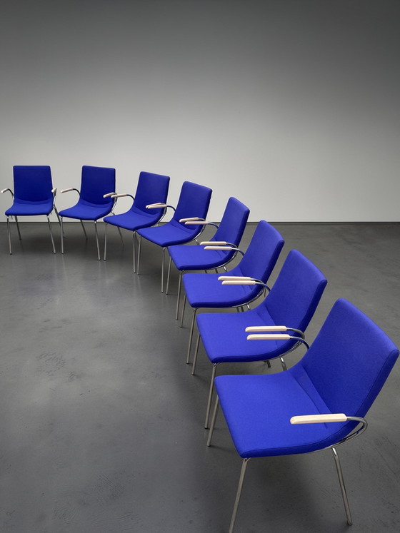 Maak kennis met de Artifort Dive stoelen van Michiel van der Kley, een perfecte combinatie van modern design en functionaliteit. Deze stoelen zijn niet alleen een lust voor het oog met hun levendige blauwe bekleding, maar ook zeer praktisch doordat ze stapelbaar zijn voor eenvoudige opslag.