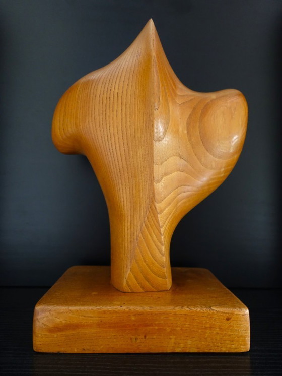 Zeer fraai, Amerikaans grenen (?) abstract beeldhouwwerk. Een echte eyecatcher! Helaas is de kunstenaar me niet bekend. Mooie afmetingen: H38cm x B21cm x D16 cm. Het beeld is naar schatting tussen de 30 en 40 jaar oud.