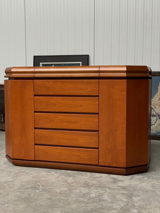 Een prachtig vintage dressoir een ietwat achthoekige vorm aan de voorkant 6 lades en 2 deuren
