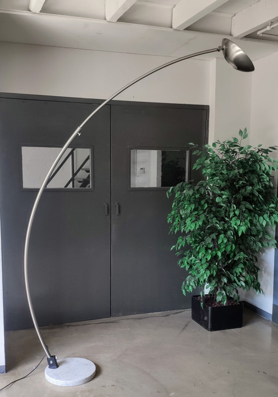 Deze prachtige Adda booglamp uit de jaren negentig is een Italiaans designstuk dat elegantie en functionaliteit combineert. De lamp heeft een stevige marmeren voet en een slanke metalen boog, perfect voor het verlichten van grote ruimtes. Het tijdloze ontwerp maakt het een geweldige aanvulling op zowel moderne als klassieke interieurs. (Wordt gratis bezorgd in een cirkel van 220km)