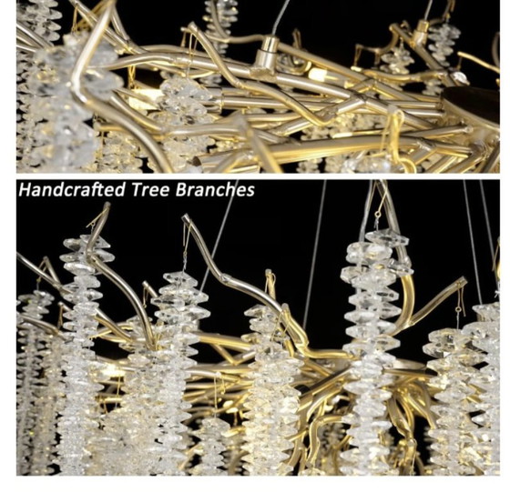 Akeelighting Gouden Kristallen Kroonluchter 31,5” Moderne Boomtak Luxe Eetkamer