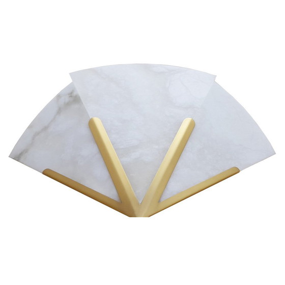 Art Deco stijl wandarmatuur gemaakt van albast steen en goudkleurige metalen structuur.