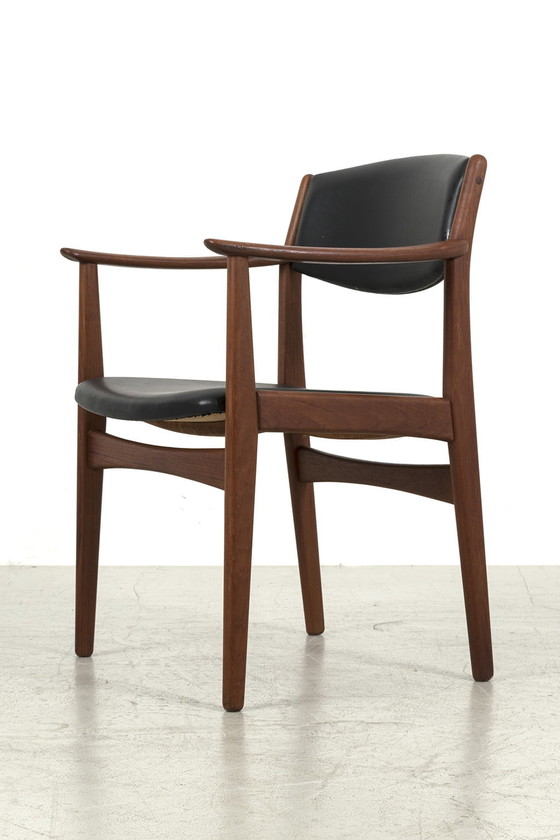 Een prachtige stoel met armleuningen gemaakt door de meubelfabriek van Albin Johansson & Söner Hyssna uit Zweden.In goede vintage staat.
