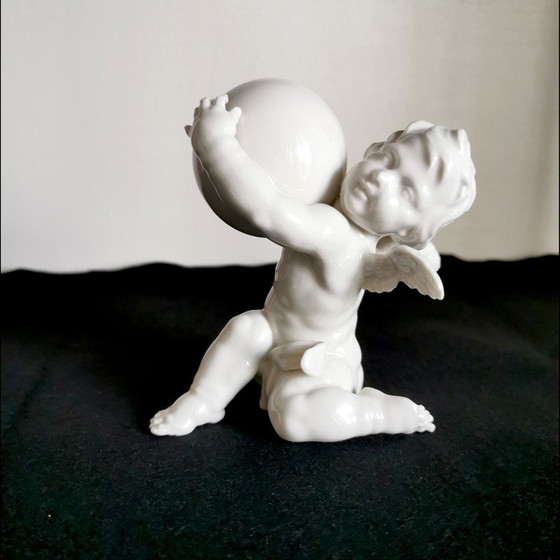 Prachtig engeltje van authentiek Algora-porselein, het porselein is als nieuw, zonder chips of barsten. De basis draagt het blauwe Algora-stempel.