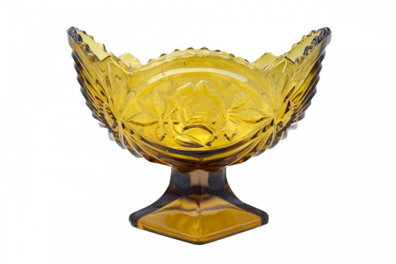 Amberkleurige jardinière "roos", Ząbkowice glasfabriek, Polen. Afmetingen: hoogte 17 cm / breedte 22 cm / diepte 13 cm