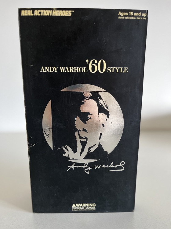 Dit item is een verzamelbaar actiefiguur uit de "Real Action Heroes"-lijn, dat kunstenaar Andy Warhol in zijn stijl uit de jaren 60 afbeeldt.