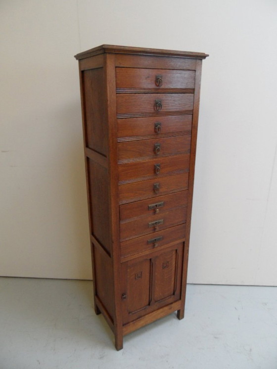 Antiek eikenhouten ladekast met lades en deuren. Gemaakt in Nederland rond 1900. In zeer goede en originele staat.