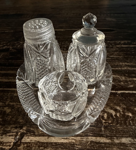 Ontdek de tijdloze elegantie van deze antieke kristallen tafelset, een verfijnde aanvulling op elke eetkamer. Deze set, vervaardigd uit hoogwaardig kristal, straalt een klassieke charme uit die uw tafelsetting naar een hoger niveau tilt.