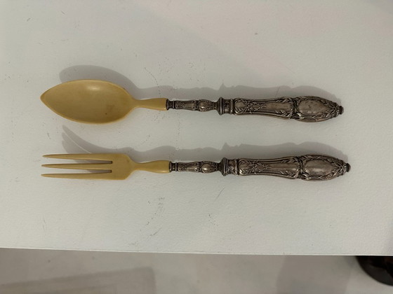 Antiek saladeservies - Zilver en gesneden natuurhoorn