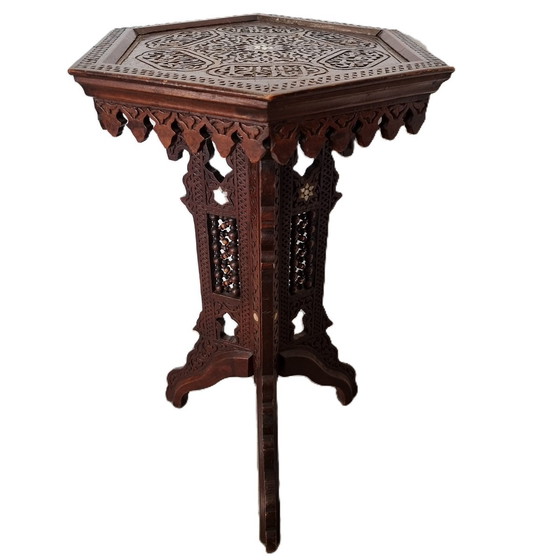 Antiek Syrisch Bijzettafeltje Met Parelmoer, Begin 20e Eeuw