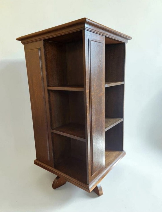 Grote boekenmolen uit de jaren 30. houtsoort eiken. Herkomst nederland.