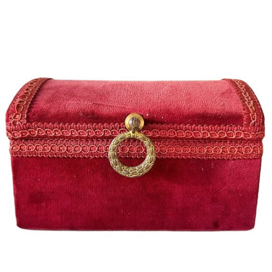 Antieke bordeaux rode fluwelen Franse sieradenkist rood fluweel 1920's