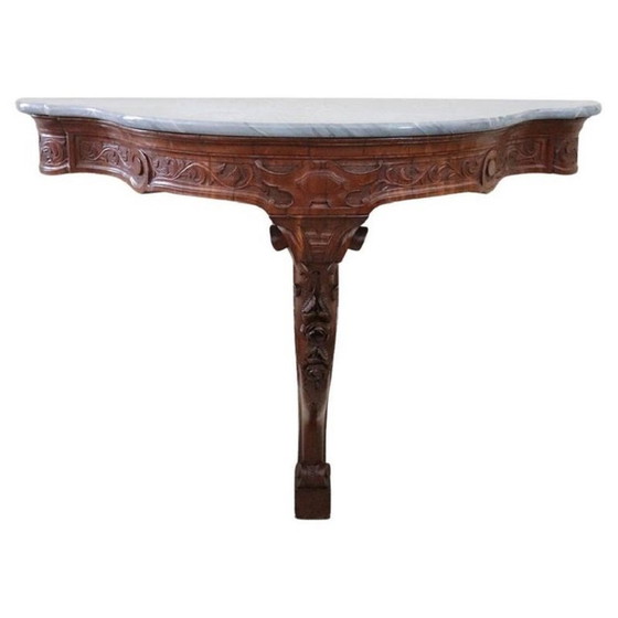 Antieke console tafel in hout met marmeren blad, 19e eeuw