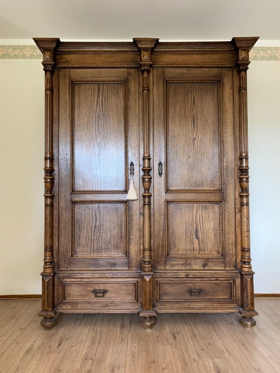 Deze antieke eiken kast is een prachtig voorbeeld van Hollandse vakmanschap. Handgemaakt met oog voor detail, straalt deze kast een klassieke charme uit. De kast is voorzien van twee deuren en ruime opbergruimte met planken en lades. Het hout heeft een rijke bruine kleur die de elegantie van het stuk benadrukt. Perfect voor liefhebbers van antiek en klassieke interieurs. Geheel demontabel.