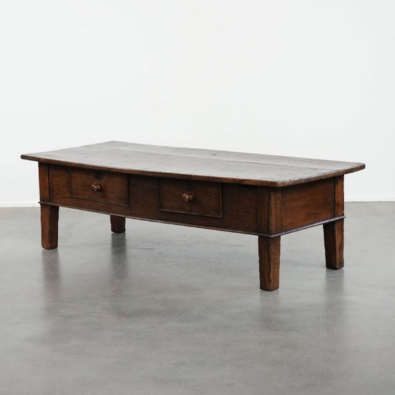 Antieke en tijdloze Zuid Europese salontafel gemaakt van kastanjehout uit de 18e eeuw met twee lades