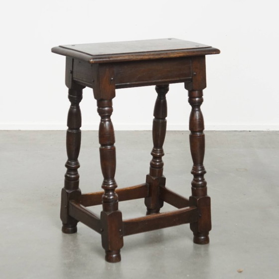 Antieke Engelse kruk/ joint stool/ bijzettafeltje uit de 18e eeuw