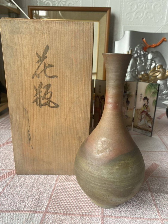 Antieke Japanse Bizen Ware vaas in originele doos. In uitstekende, ongebruikte staat. Bizen yaki, vaas gebruikt voor bloemen. Jaren geleden gekocht op een veiling.
