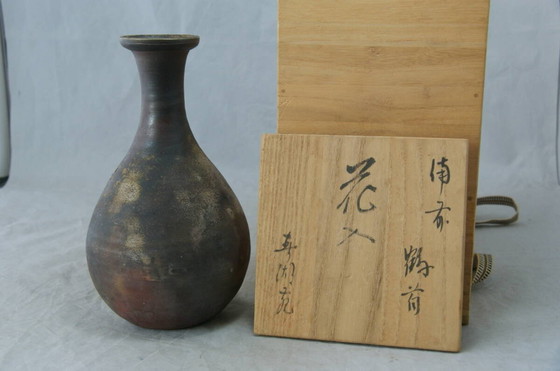Dit is een antieke Bizen Yaki-vaas uit Japan, nog in de originele doos.