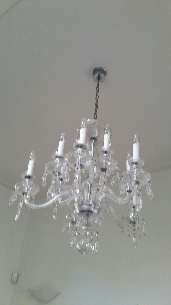 Prachtige kristal/ glas kroonluchter met 9 kaarsen. Gekocht bij Antiquair. In zeer goede staat. Verzenden of ophalen.