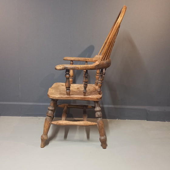 Deze zeldzame antieke Windsor-verandastoel uit de periode 1870–1900 is een uitzonderlijk voorbeeld van Engels vakmanschap en vormt een waardevolle toevoeging aan liefhebbers van authentieke antieke meubels. De stoel is met zorg vervaardigd uit een combinatie van taxushout en essenhout, materialen die bekendstaan om hun duurzaamheid en elegante uitstraling. De verfijnde en karakteristieke houtsnede is typerend voor het hertogdom Yorkshire, een regio die internationaal bekendstaat als belangrijk centrum voor de productie van originele Windsorstoelen in de 19e eeuw.