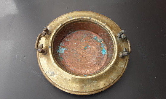 Antieken , koperen wasteil in goede staat en zonder aanmerkingen. De basis is gemaakt uit zuiver koper en het bovenste gedeelte uit messing. De draaghengsels zijn mooi en in goede staat. Geen gaten of breuken , lekvrij. De foto's dienen ook als info.