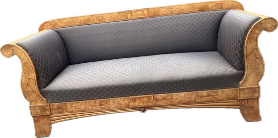 Very nice antique art deco / Biedermeier sofa from about 1820-1829 of beech with pieces of veneer. Elegant model. Seating for 2 to 3 people.