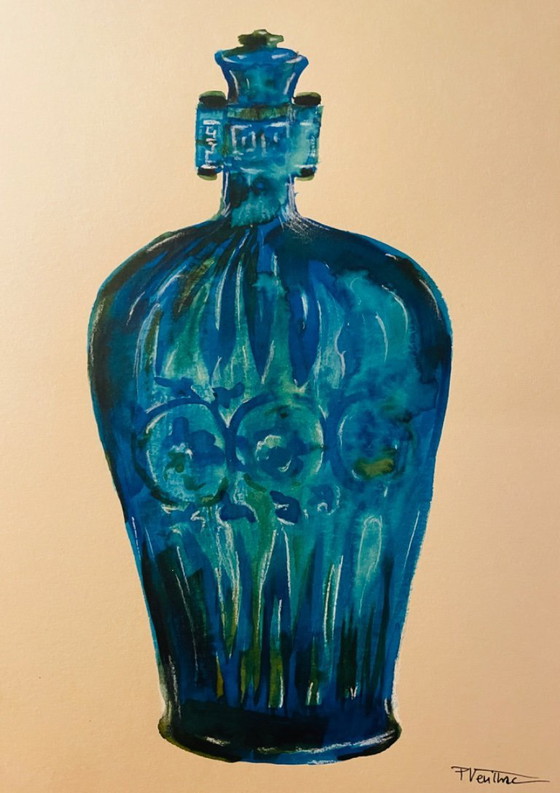 Aquarel en inkt schilderij Wabi Sabi vaas Azië collectie