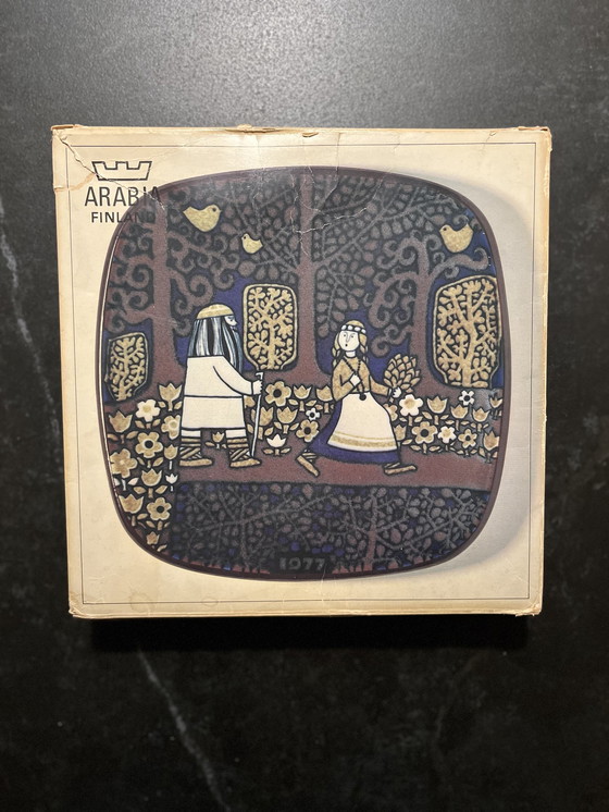 Arabia Finland Jaarbord / Annual Plate 1977 In Originele - Maar Ietwat Beschadigde - Doos. Ontwerp / Design: Raija Uosikkinen