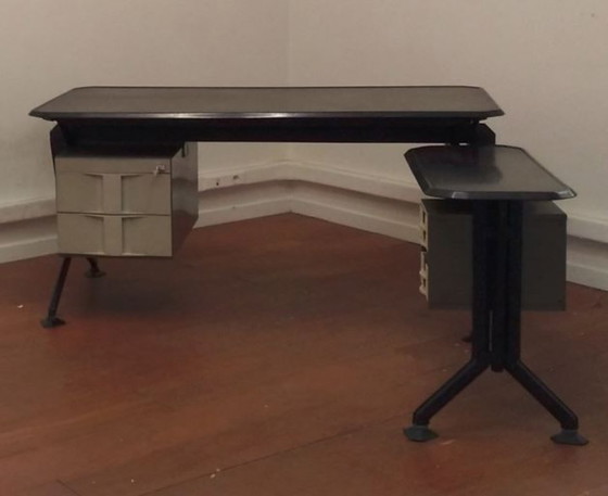 Vintage ARCO industrieel bureau (Arredamenti Metallici Serie «ARCO») van B.B.P.R. Studio voor Olivetti, 1963. Geleverd met zijwerkblad.