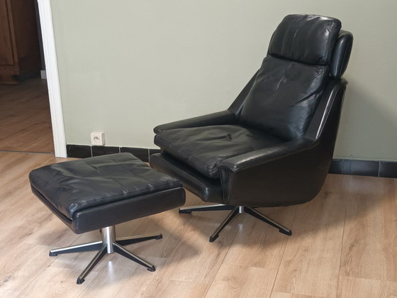 Lederen draaibare fauteuil met ottoman ontworpen door Werner Langenfeld voor Esa.