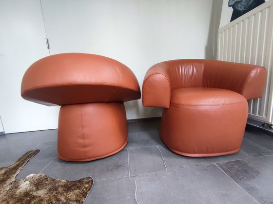 1 armstoel in Turmeric leder B0032 (cognac), in nieuwstaat, nieuw kost deze armstoel 3150 euro. Slechts 1 stuk, en dus geen 2 zoals op foto.