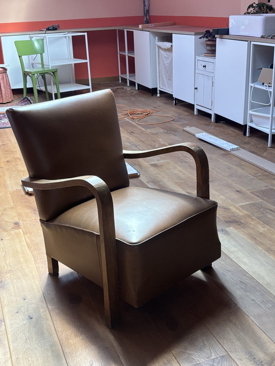Deze zware kwaliteit art deco fauteuil zit heerlijk. De stoel brengt een hele mooie vintage look aan je kamer. Kleine gebruikssporen zichtbaar (zie fotos).