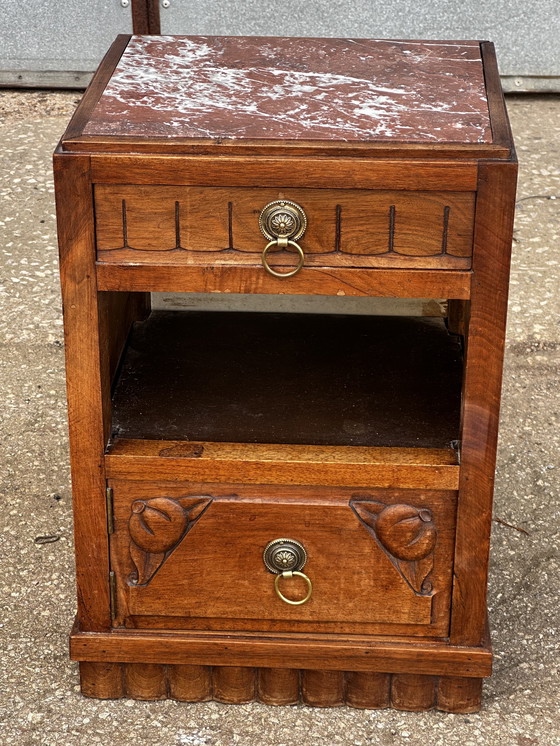 Image 1 of Art-Deco gesneden houten en marmeren nachtkastje