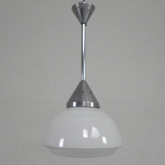 Art Deco hanglamp met geribbelde glazen kap, jaren 30