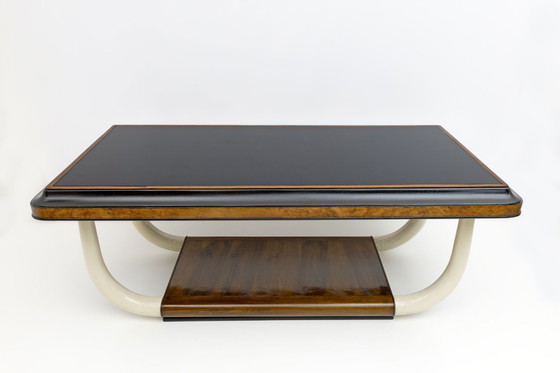 Art Deco Italiaanse notenhouten glazen tafel met olifant slagtandpoten, jaren '30