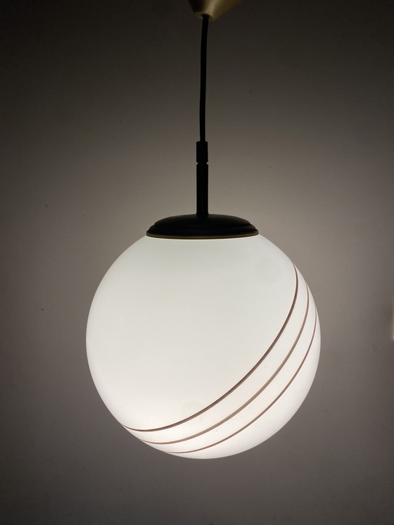 Verlicht uw ruimte met de tijdloze elegantie van de Art Deco Lakro Amstelveen hanglamp. Deze lamp is met oog voor detail vervaardigd en heeft een opvallende bol van melkglas, versierd met delicate gouden accenten, die de verfijning van het Art Deco-tijdperk belichaamt.