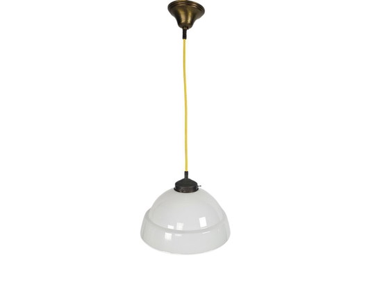 Deze prachtige Art Deco hanglamp uit de eerste helft van de 20e eeuw straalt elegantie en verfijning uit. Het opaline glas zorgt voor een zachte, warme gloed die elke ruimte een uitnodigende sfeer geeft. De koperen armatuur voegt een vleugje klassieke charme toe, perfect voor liefhebbers van vintage design.