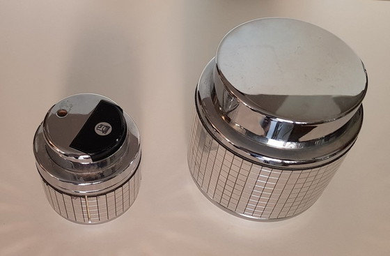 Vintage Design Aansteker 6,5 x 6 cm. Fabrikant Erhardt und Söhne Ontwerpperiode 1960 tot 1969 Productieperiode 1960 tot 1969 Land van vervaardiging Duitsland Identificatiemerk Dit stuk heeft een toeschrijvingsmerk Stijl Mid Century, Art Deco, Regency Gedetailleerde staat Zeer goed - Dit vintage/antieke item heeft geen gebreken, maar het kan lichte sporen van gebruik vertonen. Restauratie en schade Details Lichte slijtage in overeenstemming met leeftijd en gebruik Product Code QDP-942265 Materialen Chroom Plating Kleur Zilver Hoogte 10 cm Diameter 9 cm Rechten Let op Invoerrechten zijn niet inbegrepen in de prijzen die je online ziet. Het kan zijn dat je invoerrechten moet betalen bij ontvangst van je bestelling.